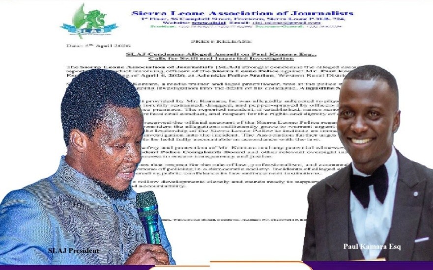 The Sierra Leone Association of Journalists (SLAJ) strongly condemns the alleged assault and reported misconduct involving officers of the Sierra Leone Police against Mr. Paul Kamara Esq. on the evening of April 4, 2026, at Adonkia Police Station, Western Rural District.